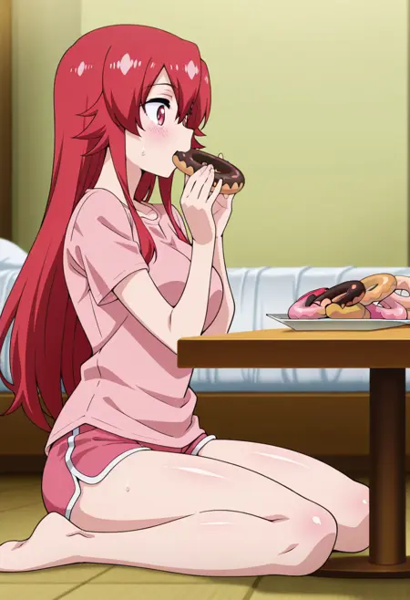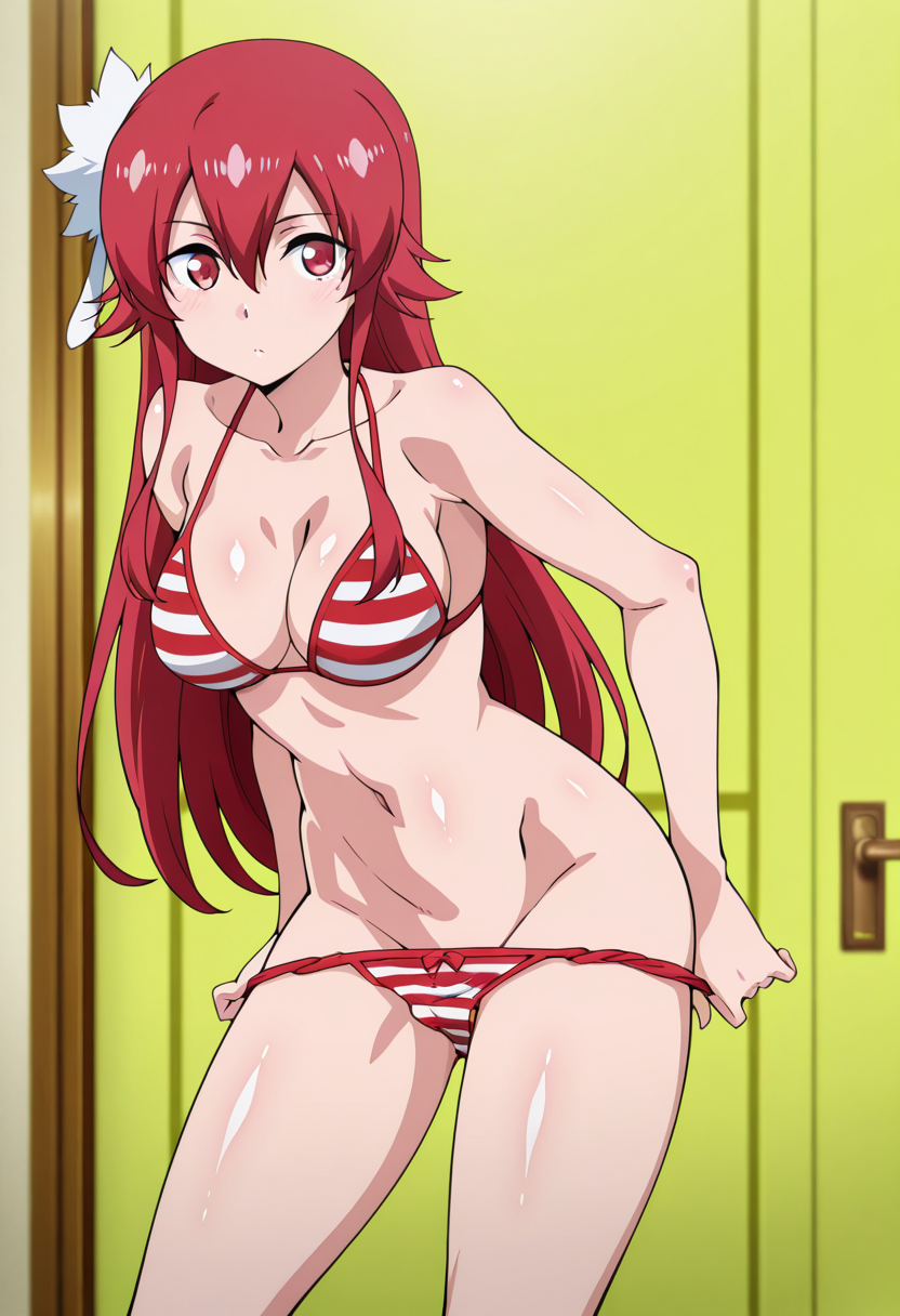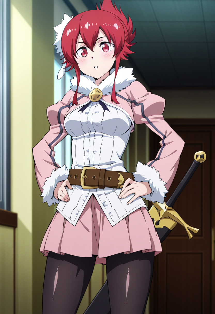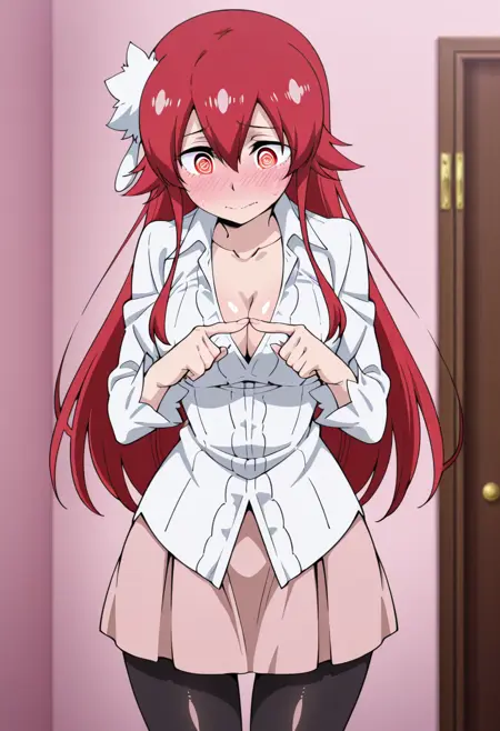 - If you're using the white shirt, cleavage, pink skirt, black pantyhose outfit then put school uniform in negative prompt for it to work better.
