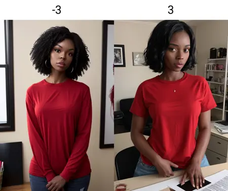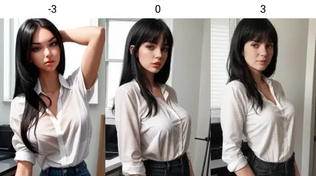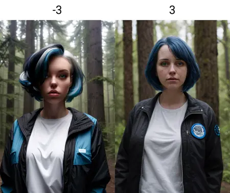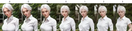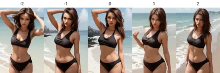 일반적인 사용 시 가중치: -3에서 +3 (필요에 따라 더 높게 설정할 수 있습니다. 샘플 이미지를 참고하여 원하는 효과를 선택하세요.)