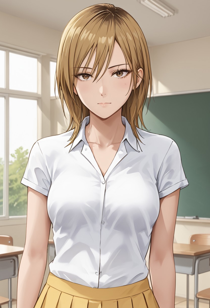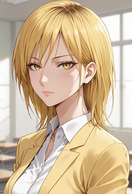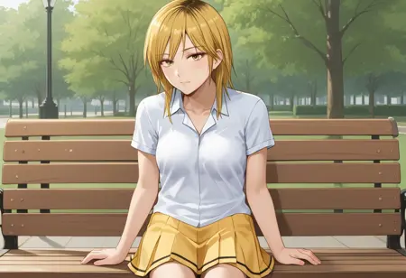 Trigger: Yoshida Masaki, blond hair, yellow skirt, shirt