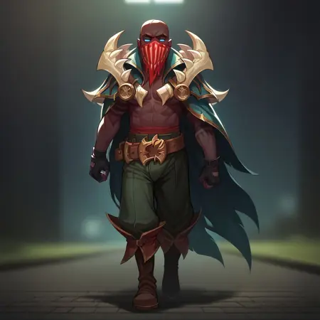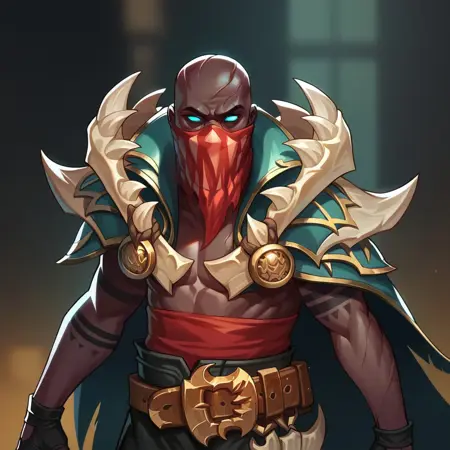 기본 프롬프트: pykelol, 검은 피부, 파란 눈, 빨간 마스크