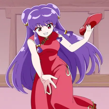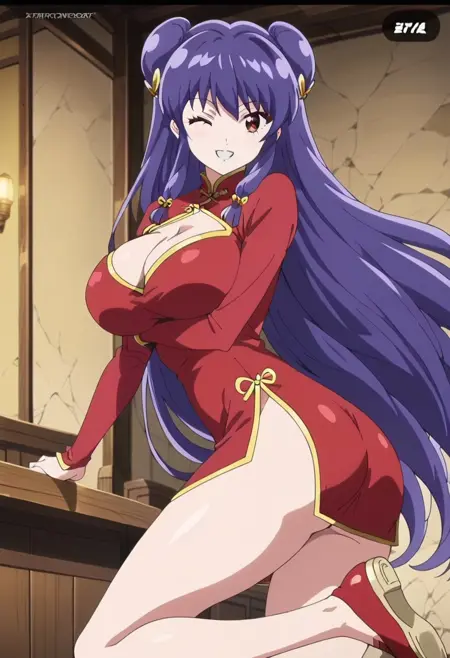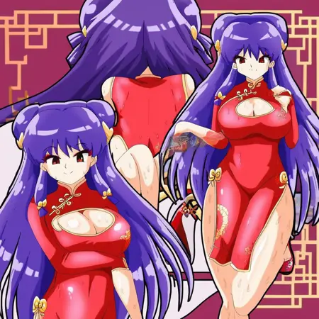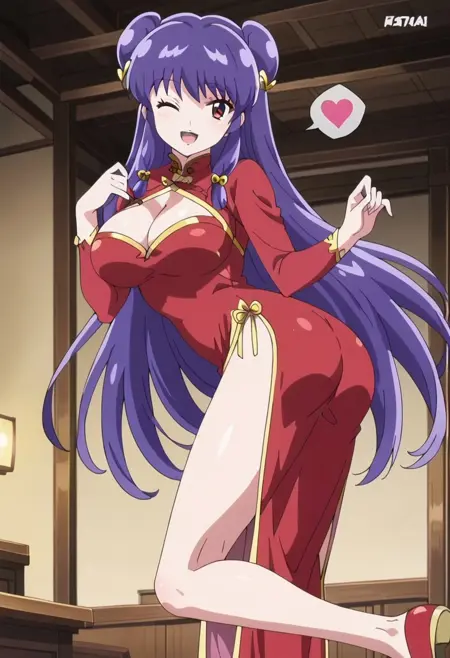 Base: Shampoo, blue hair, red eyes, long hair, twin buns hairstyle,