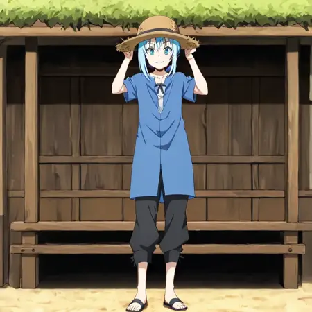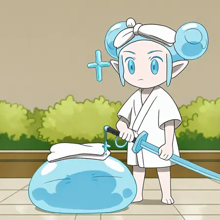 prompt = Rimuru_Tempest, Slim3F0rm, Hum4nF0rm, blue hair, golden eyes, black/white/blue outfit,
