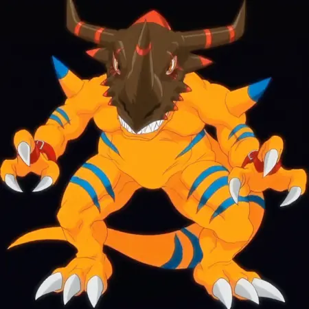 标签:geogreymon,数码宝贝(生物),角鼻龙,角鼻龙类,橙色皮肤,橙色身体,爪子,数码宝贝,身体斑纹,爬行动物,红色手套,蓝色条纹,头盔,尖牙,角,红色条纹头盔,条纹,红色手部装备,胸肌,恐龙,尾巴,角鼻龙科,斑纹,橙色眼睛,牙齿