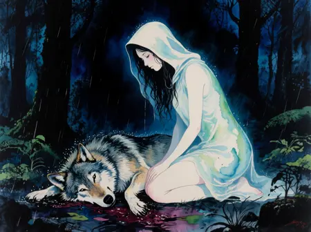 물방울처럼 뿌려진 잉크로 특징지어지는 예술적인 잉크 스타일. LoRA는 NSFW 이미지를 생성하는 경향이 있으며, 제가 이를 방지하려 해도 자주 서명을 그립니다. 자주, 주제는 단색으로 남아 있고 주변은 색색으로 둘러싸입니다.