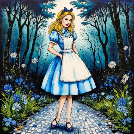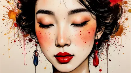 An artistic ink style, characterised by splashes of ink. The LoRA has a tendency to produce NSFW images. It also frequently draws a signature, despite my efforts to prevent it. Often, the subject remains monochrome surrounded by color.
