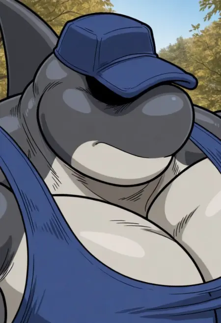 강화 프롬프트: "fish boy, grey skin, covered eyes, dorsal fin, muscular, masculine, bara, Massive Busty Pecs, puffy nipples"