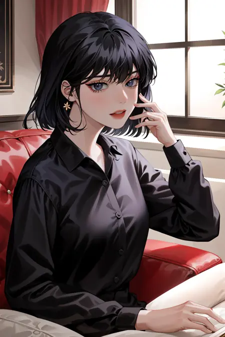 衬衫:han sooyoung, 1girl, 刘海, 黑色衬衫, 长袖