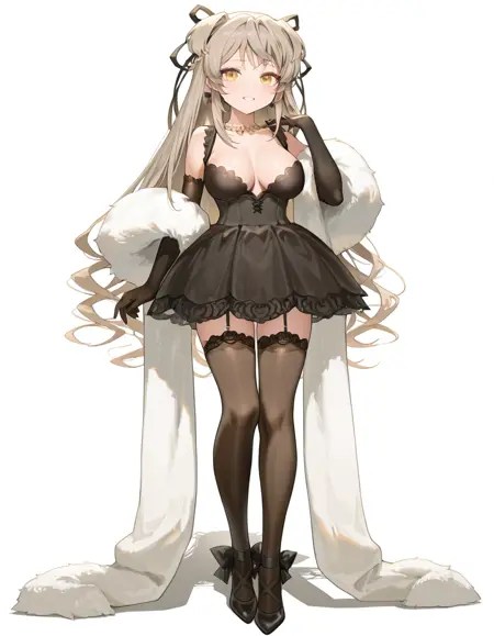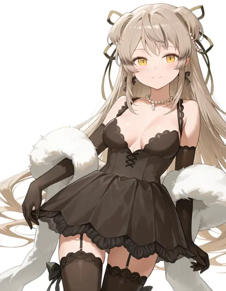 RosesAndBirdsong, RAB_dress, RAB_pearl_choker, RAB_hair_ribbon, RAB_elbow_gloves, RAB_feather_boa, RAB_neck_ribbon, AB_thighhighs, RAB_ankle_bow, RAB_high_heels, RAB_earrings, RAB_garter_straps