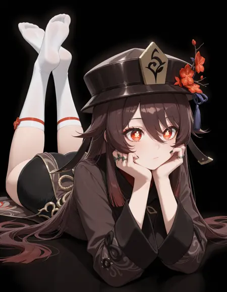 An Illustrious Lora for Hu Tao from Genshin Impact for both the Plum Blossom Bouquet & Cherries Snow-Laden outfits.