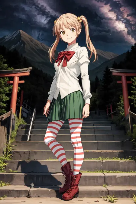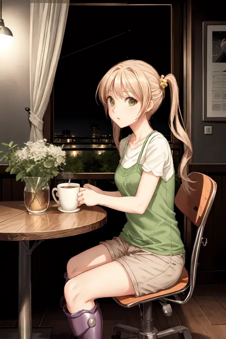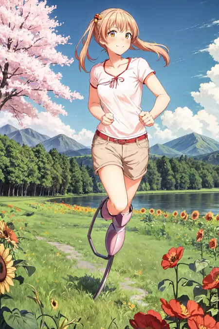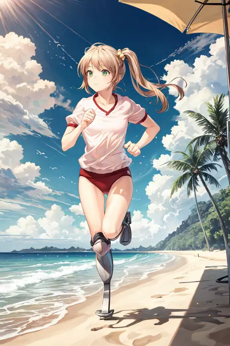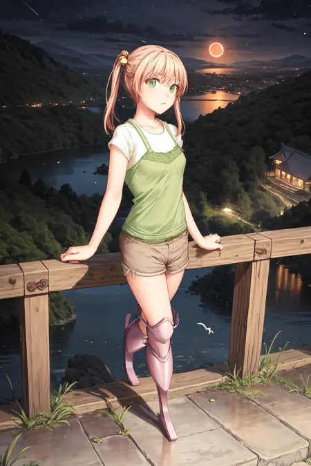 As expected, prosthetic legs are very difficult to represent accurately. I advise you to conduct multiple tests with images of medium resolution (such as 512x768), and then refine using the seed that turn out correct. It's possible to cover her legs with long socks, as she sometimes does in the game. Lastly, she can have real legs. Hoping you'll like this!