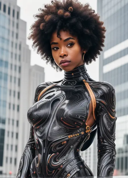 アフロ・フューチャリズムコンセプトLoRA。リアルなチェックポイントと相性が良いです。