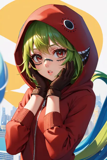 Gumi: matrygumi, 红色连帽衫, 连帽, 手套