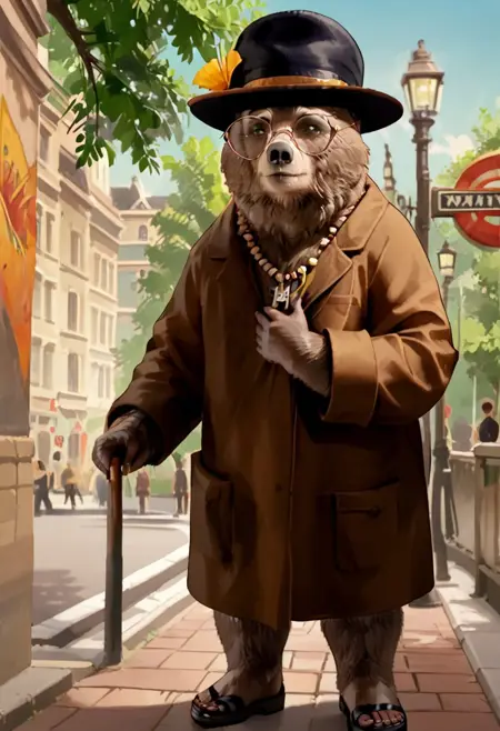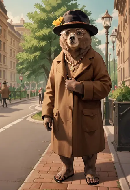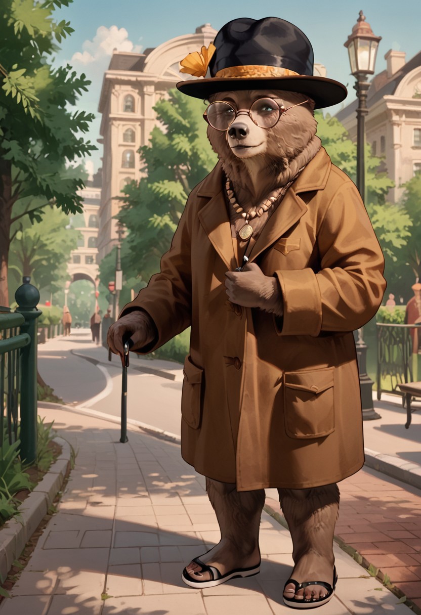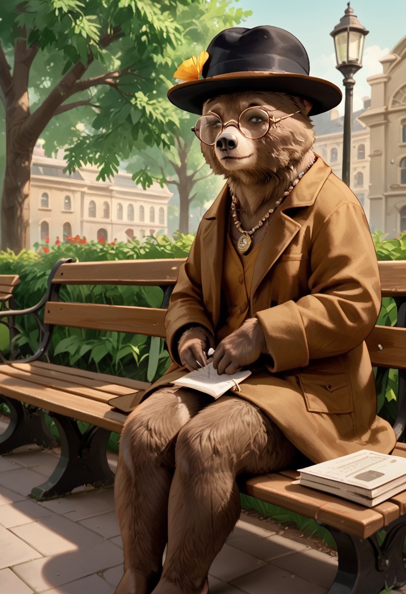 1girl, bear, feral, female, brown fur, glasses, necklace