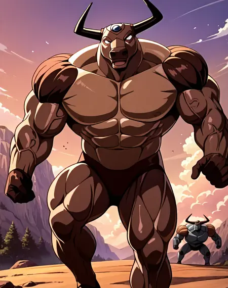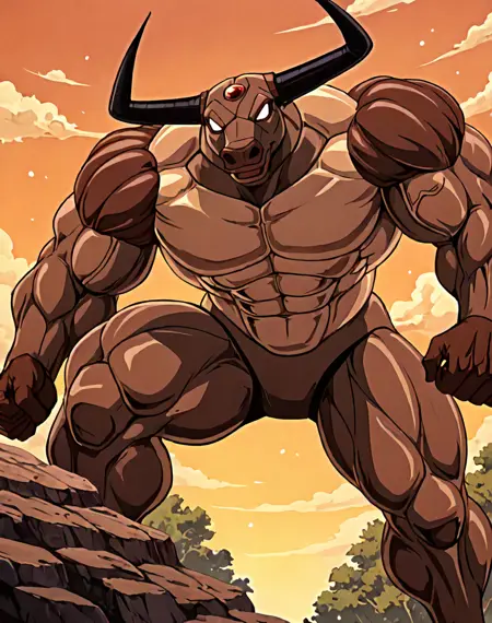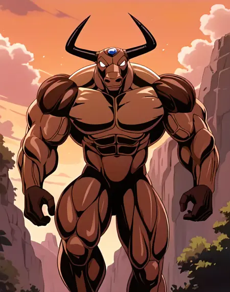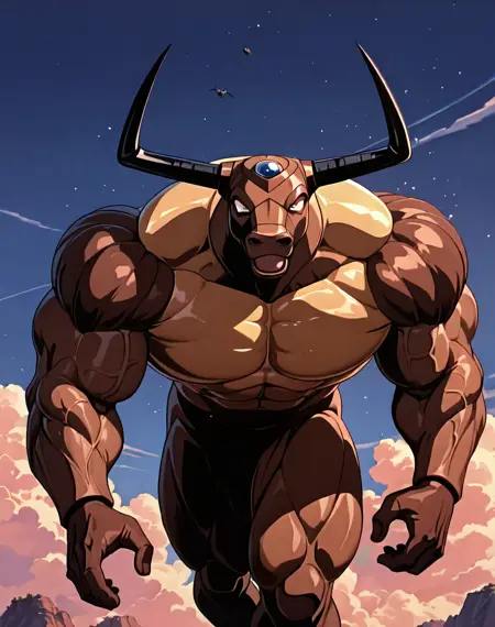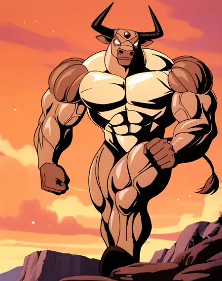 此LoRA的提示词为(Mumbo Jumbo, Silverhawks_cartoon, 牛头怪, 机器人, 肌肉发达)。有时添加额外的提示词如(公牛, 机械, 机甲)可以帮助更好地生成图像。