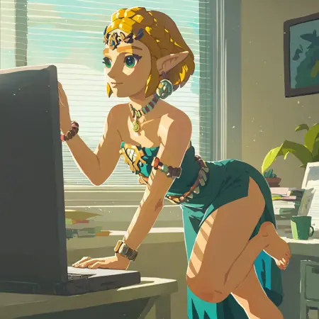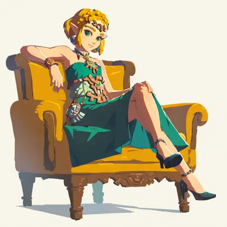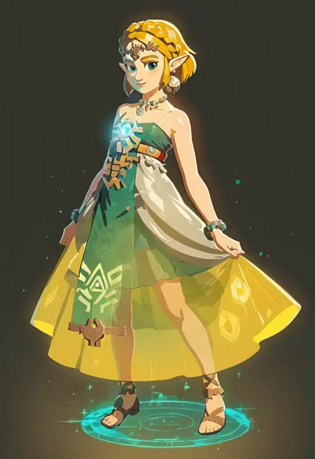 Prompt Suggestions: totkzelda, 1girl, solo, zonai dress, short hair, bare shoulders