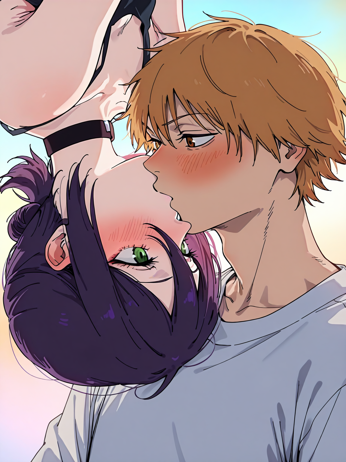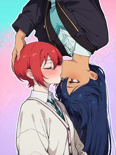 2girls, yuri, upside-down kiss, upside-down, kiss