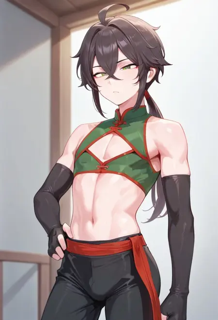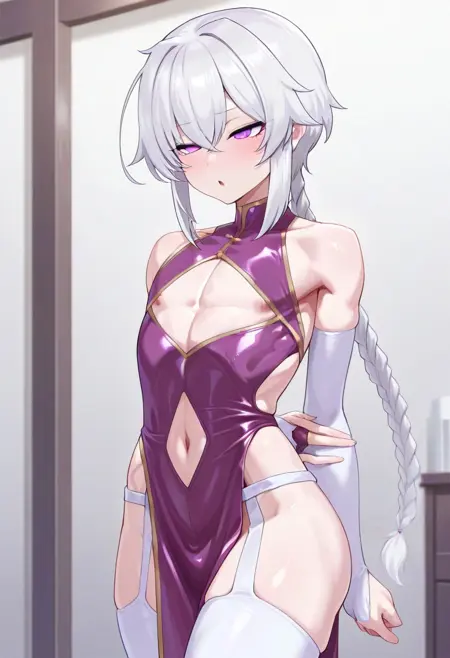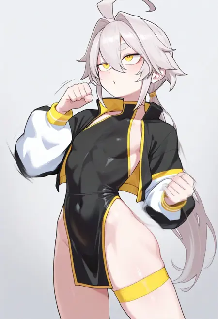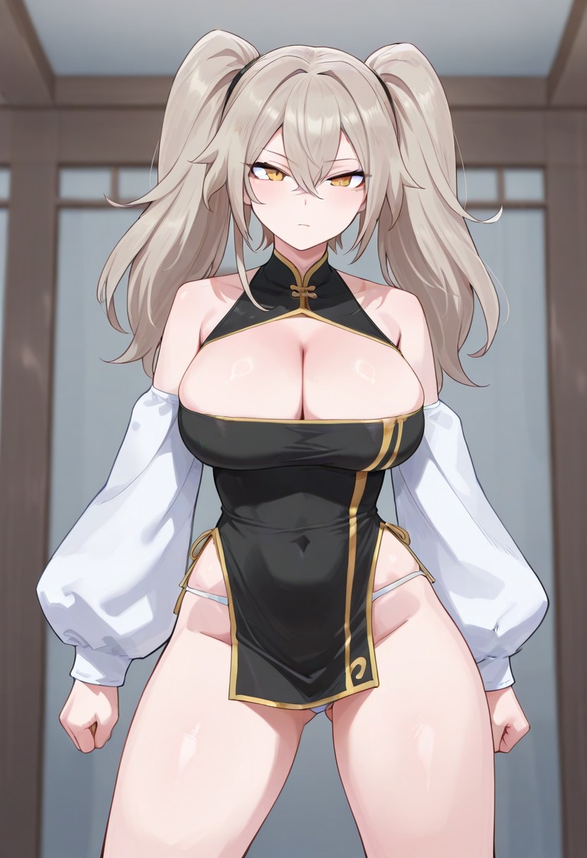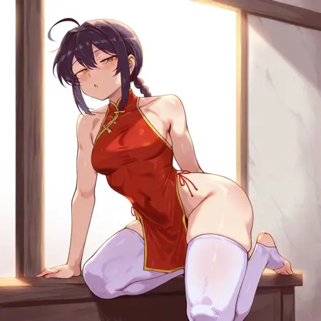 muming, 1girl, solo, dress, red china dress, sleeveless china dress, bandaged hand