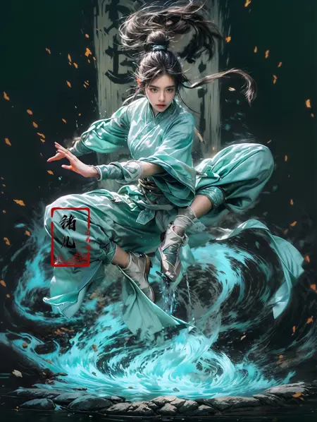 V1 버전의 이 LORA는 무술 동작과 연기 배경을 제공합니다.