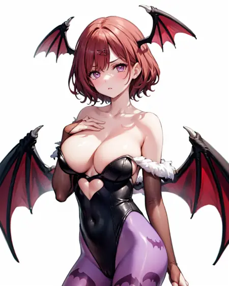 Full Outfit: highleg leotard, print pantyhose, bat print, bridal gauntlets, head wings, bat wings
