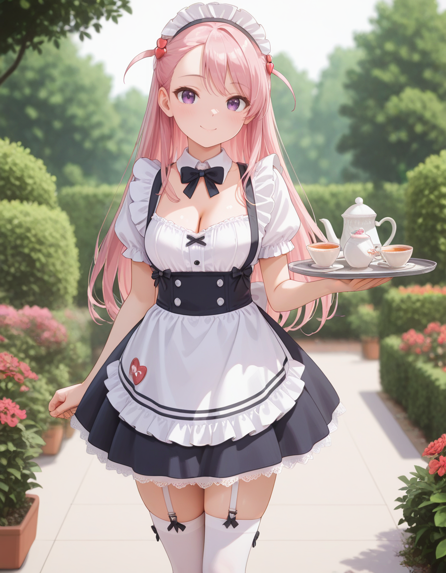 <lora:maho_sakuramori-kurakon_s1-v3-ixl-anime-soralz:1>, maho sakuramori (kurakon), long hair, pink hair, hair ornament, asymmetrical bangs, purple eyes