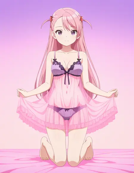nightgown, see-through, pink negligee, purple lingerie, panties