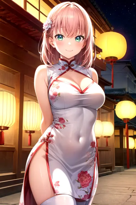 support tags: 1girl, solo, pink hair, short hair, hairpin, cyan eyes,
