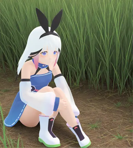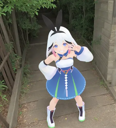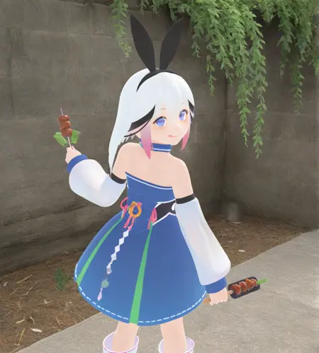 BASE : プロトシヴィー(Puroto Shivī),blue eyes,multicolored hair,white hair,pink sidelocks, short hair,bangs,bunny ears,hairband,