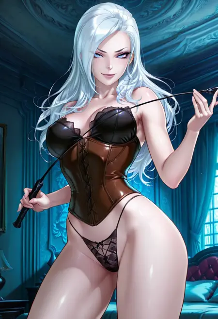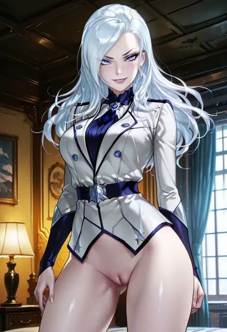 1girl, white hair, blue eyes, pale skin, medium breasts,
