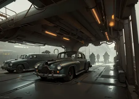 dieselpunk age,retro science fiction, 1950s style, retro artstyle,