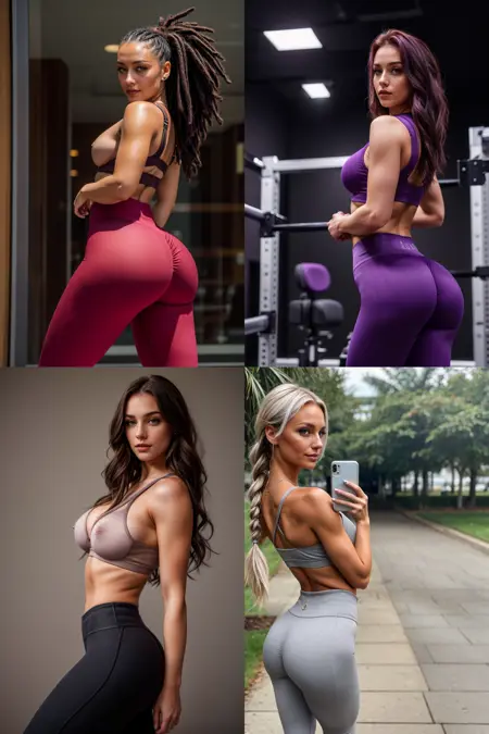 lora:lgnggymXLrd:{0.3|0.4|0.6|0.7|0.8|0.9|1}, {lgnggymft, }{1girl, }{realistic, } leggings, gym, {solo, |}{standing, |||||}{ass, ||||||}{looking at viewer, |||||||||}{full body, ||||||||||}{midriff, |||||||||||}{from behind, |||||||||||||}{holding, |||||||||||||}{looking back, ||||||||||||||}{dark skin, ||||||||||||||}{phone, ||||||||||||||}{cellphone, ||||||||||||||}{holding phone, ||||||||||||||}{smartphone, ||||||||||||||}{dark-skinned female, |||||||||||||||}{selfie, |||||||||||||||}{pink pants, ||||||||||||||||}{exercise, ||||||||||||||||}{muscular, ||||||||||||||||}{blue sports bra, ||||||||||||||||}{weights, ||||||||||||||||}{dumbbell, |||||||||||||||||}{back, |||||||||||||||||}{navel, |||||||||||||||||}{grey pants, |||||||||||||||||}{toned, |||||||||||||||||}{muscular female, |||||||||||||||||}{taking picture, |||||||||||||||||}{k-pop, |||||||||||||||||}{black leggings, |||||||||||||||||}{from side, |||||||||||||||||}{weightlifting, |||||||||||||||||}{looking at phone, |||||||||||||||||}{mixed media, |||||||||||||||||}{solo focus, ||||||||||||||||||}{bare shoulders, ||||||||||||||||||}{pink sports bra, ||||||||||||||||||}{pantylines, ||||||||||||||||||}{grey sports bra, ||||||||||||||||||}{sweatpants, ||||||||||||||||||}{closed mouth, ||||||||||||||||||}{profile, ||||||||||||||||||}{abs, ||||||||||||||||||}{purple pants, ||||||||||||||||||}{red pants, ||||||||||||||||||}{biceps, ||||||||||||||||||}{green pants, ||||||||||||||||||}{standing on one leg, ||||||||||||||||||}{walking, ||||||||||||||||||}{sitting, ||||||||||||||||||}