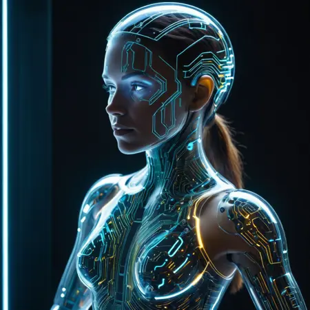 이 LoRA는 유리로 만들어졌고 내장 회로 및 기타 요소가 있는 물체를 생성합니다.