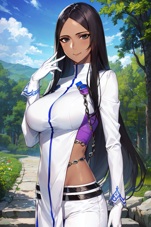 arjuna (fate), genderswap, black hair, black eyes, long hair, dark-skinned female, genderswap