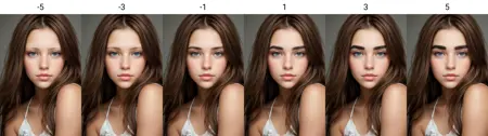 눈썹이 없는 측면은 약간 더 초현실적이며, 긍정 프롬프트에 '높은 피부 텍스처' 또는 '가벼운 주근깨'를 추가하는 것이 권장됩니다.