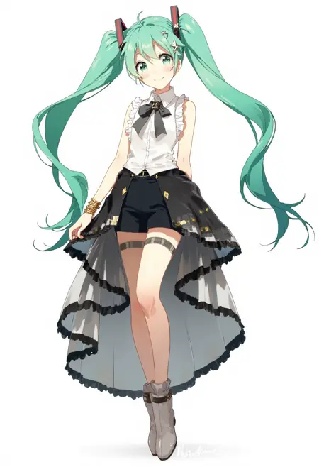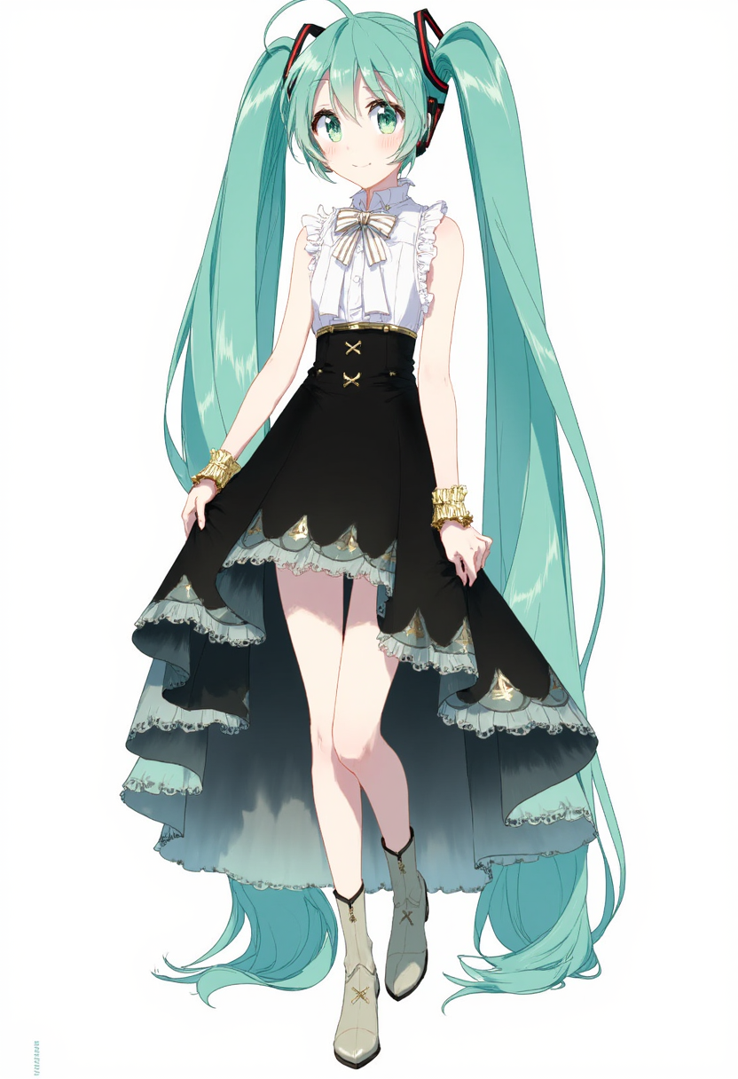 数据集中有大量初音未来的图片,但在提示时不要使用“Hatsune Miku”这个名字,因为Flux1已经包含了这个角色(尽管风格不同)。如果你想要初音未来的形象,可以使用“翠绿色双马尾”或“miku”。