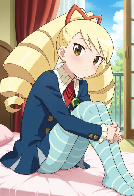 lunaexe, blonde hair, brown eyes, drill hair, twintails, long hair,
