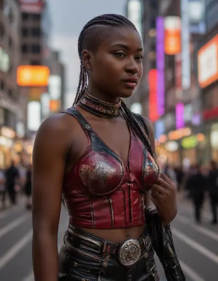 Delivers fierce Afro-punk hairstyles featuring symmetrical or asymmetrical shaved or buzzed undercuts, short Mohawks and colorful braids and weaves of varying lengths.