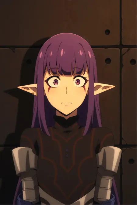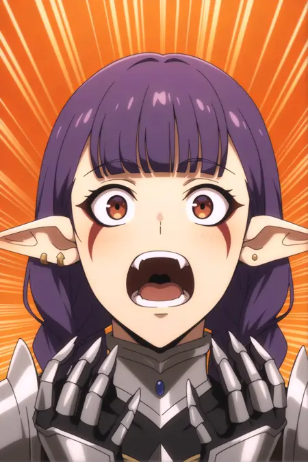 1. 适用于懒得查看图片标签的人的简单标签:Esil Radiru、耳环、尖耳朵、紫色头发、红色眼睛、獠牙、面部纹路。使用这些标签,角色应该能被准确还原。