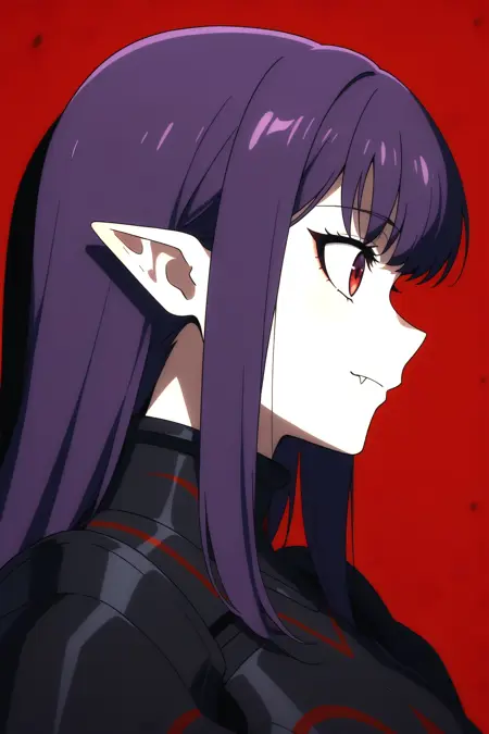 1. Simple tags that work well for those who are too lazy to look at the tagging in the pictures: Esil Radiru, earrings, pointy ears, purple hair, red eyes, fangs, facial mark. With these tags, the character should definitely be reproduced correctly.