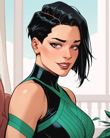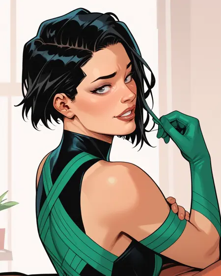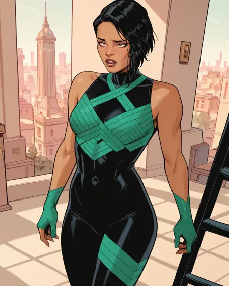 트리거: sindcl, 검은 머리, 검은 피부를 가진 여성, 바디수트, 장갑