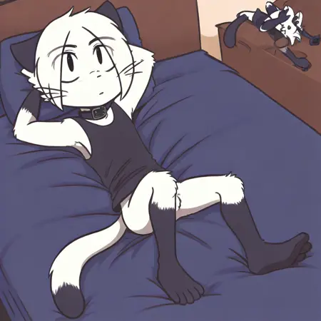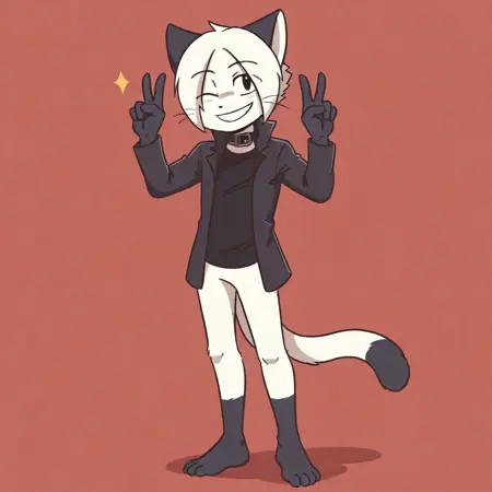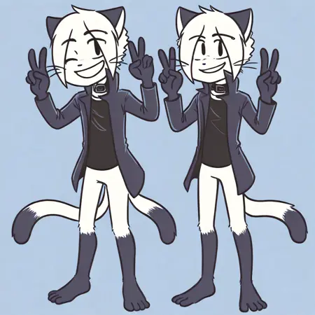 catboy, siamese cat, white fur, white hair, black eyes, black ears, black hands, black feet, dipstick tail,