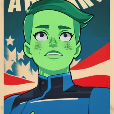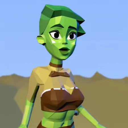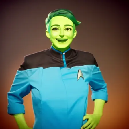 プロンプトに「緑の肌」を含めることを確認してください。そうでなければ白人の女性ができてしまいます。なぜか時々メガネを付けたがるため、「メガネ」をネガティブプロンプトに追加すると消えます。