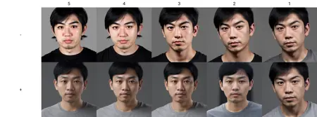 - 큰 이마를 가진 슬라이드에서 이미지 구성, 색상 변화 및 매우 불자연한 피부의 급격한 변화를 완화했습니다.