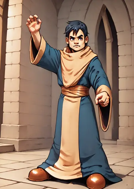 在提示中使用“Lowe”来生成角色,如果无效,可以尝试使用“LoweSF”。为生成他的服装,可在提示中添加“长袍”和“围巾”等词语。