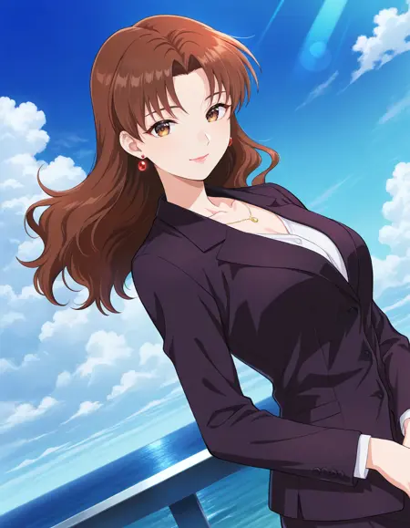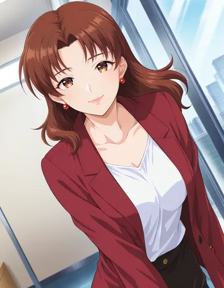 misawa haruka, brown hair, brown eyes, earrings, lips,
