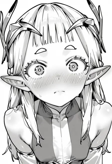 anastasia_elf, solo, 1girl, long hair, pointy ears, thick eyebrows, small breasts,bangs