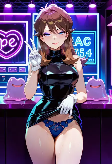 触发词为:Blue_PokeSpe, 蓝眼睛, 棕色头发, 黑色裙子, 白色手套,