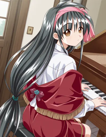 pink Hairbands, bow, shawl, white shirt, skirt