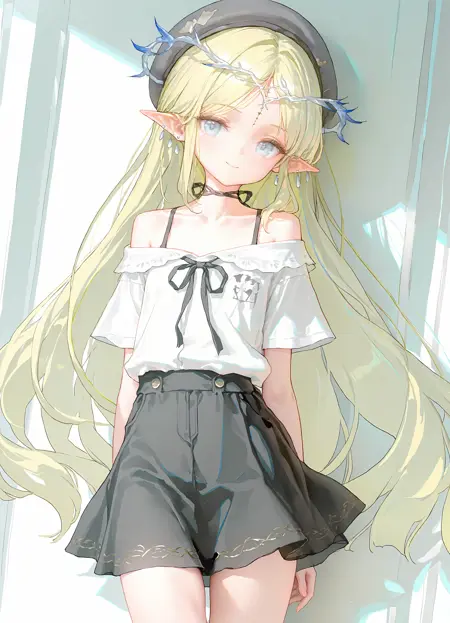 • 一周年韩国限定线下活动皮肤 (链接): cartethyia \(kr1st\), 辫子, 花环发带, 耳环, 荷叶边分离袖子, 单腕环, 粉色荷叶边, 白色连衣裙, 花纹大腿绑带, 粉色高跟鞋
