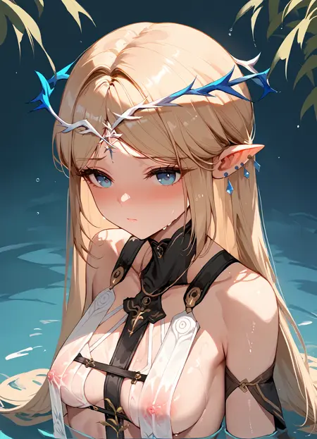 공식: cartethyia, circlet, earrings, blue strap, detached cape, bracelet, anklet, white heels