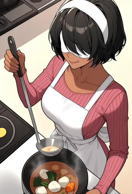 Remember not to prompt the eye color when having the blindfold. Use white leotard for the leotard, she can ditch the skirt too.